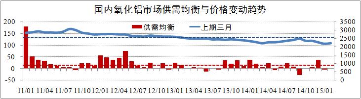 發稿時間:2015-04-09市場供給方面,2015年1-2月,全國氧化鋁市場供給分別為486萬噸和445萬噸,其中進口氧化鋁合計70萬噸,出現了較大幅度回落。近幾年數據顯示,進口氧化鋁對國內氧化鋁市場供給的貢獻率基本穩定在9%左右,預計該貢獻率將下降至7%左右。總體而言,國內氧化鋁市場供需整體處于理論均衡狀態,但上海期貨交易所三月長單價與2570元/噸的均價出現了較大程度的偏離。