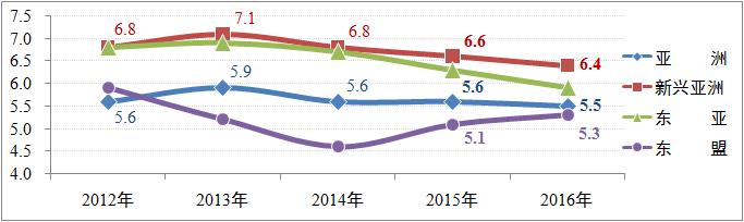 國(guó)際貨幣基金組織在五月上旬發(fā)布的《亞洲和太平洋地區(qū)經(jīng)濟(jì)展望》報(bào)告中指出,亞太地區(qū)中期將引領(lǐng)全球經(jīng)濟(jì)發(fā)展。2015年,亞太地區(qū)整體經(jīng)濟(jì)增長(zhǎng)率預(yù)計(jì)維持在5.6%的水平,2016年將小幅降至5.5%。