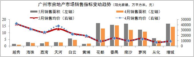 住宅銷售市場企穩(wěn)回升。網簽數據:5月份廣州市住宅銷售套數為8735套,環(huán)比增長17.2%;銷售面積為102.37萬平方,環(huán)比增長22.3%;銷售均價為14232元/平方,環(huán)比小幅下降2.1%。