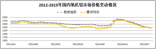 報告期內,國產氧化鋁市場價格繼續保持了下浮的基本趨勢,其中現貨加權報收2177元/噸,環比下降了2.75%,降幅較上期擴大1.09個百分點;貴州均價報收2116元/噸,環比下降了3.76%,降幅較上期擴大2.9個百分點。市場預期現階段氧化鋁市場價格正接近于波谷位置,預計2016年將會有不同程度的反彈。雖然今年以來我國氧化鋁市場價格一路下行,但國內氧化鋁工廠并未因此而普遍關停設備。數據顯示,9月份全國氧化鋁建成產能近6692萬噸,運行產能近5748萬噸,開工率近85.9%,環比上升0.2個百分點。產量方面,9月份國產氧化鋁472.4萬噸,環比下降2.72%。從供需平衡上看,9月份國產氧化鋁有近7萬噸的缺口,但整體供需仍然保持相對平衡。