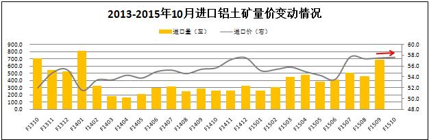 目前,全國鋁土礦進口市場依然呈現出量價齊升的基本趨勢。統計數據顯示,今年9月份我國進口鋁土礦681萬噸,環比增長749%,同比增長139%。價格方面,進口均價上浮至57.6美元/噸,環比小幅增長0.5%。從原產地分布上看,我國進口鋁土礦主要分布在馬來西亞、澳大利亞和印度等三個鋁土礦資源儲量豐富的國家。雖然今年以來氧化鋁市場受到鋁價持續低迷的拖累,但是氧化鋁企業并未因此減產,全年預期產量保持了相對穩定,對進口鋁土礦的需求依舊強勁。