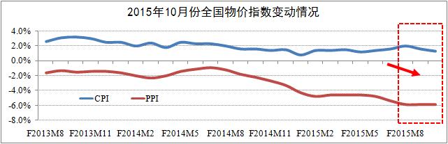 通貨緊縮壓力繼續(xù)增強。綜合分析物價指數,10月消費者價格指數(CPI)同比增長1.3%,環(huán)比下降了0.3個百分點;生產者價格指數(PPI)同比下降了5.9%,降幅較上月基本持平。與此同時,在全國流通領域50種重要生產資料中,11月上旬價格下跌的共31種,且集中在金屬及化工領域。以CPI和PPI為主的物價指數持續(xù)下行折射出我國面臨通貨緊縮的壓力持續(xù)增強。