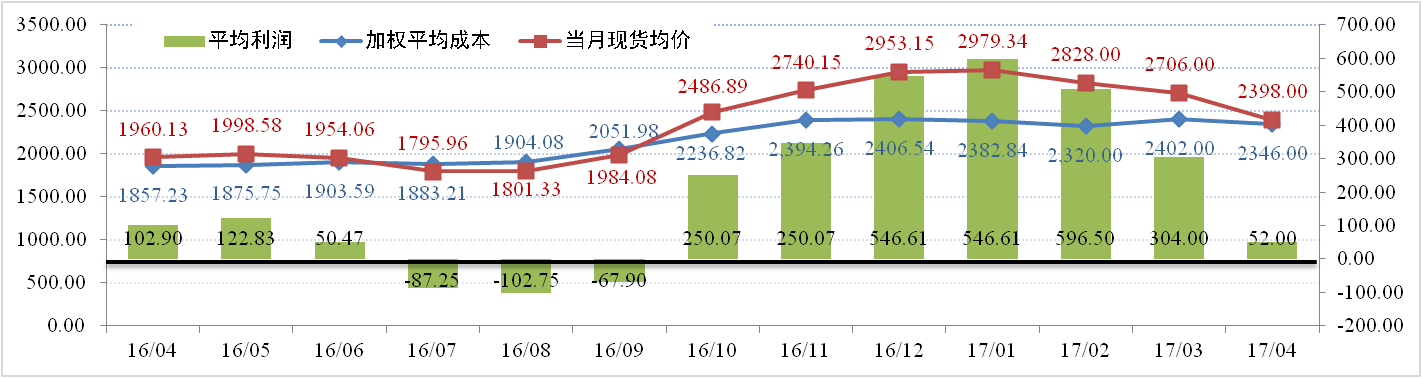 援引行業數據顯示:2017年4月中國國產氧化鋁按運行產能加權平均成本2346元/噸,較3月份下跌約54元/噸。其中,煤炭和礦石價格小幅下滑、燒堿價格受環保因素影響相對堅挺。以4 月末的大單成交平均價格 2300 元來計算,多數氧化鋁企業已經開始進入盈虧平衡甚至微虧狀態。