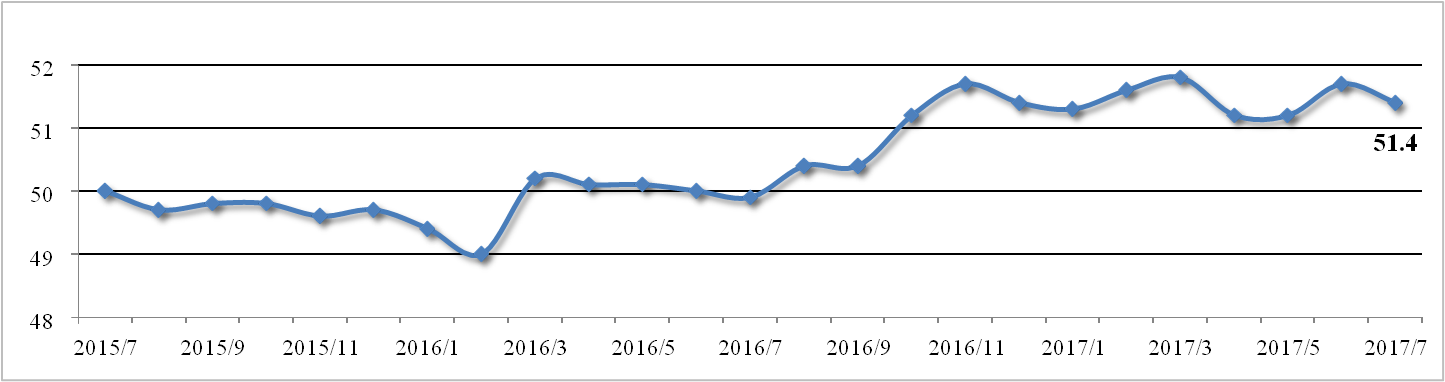 7月官方制造業(yè)PMI為51.4%,略低于預(yù)期,較上月回落0.3個(gè)百分點(diǎn),依然 位于景氣區(qū)間。生產(chǎn)指數(shù)與新訂單指數(shù)差值大幅縮小至0.7個(gè)百分點(diǎn),反映制造 業(yè)供求關(guān)系有所改善,對(duì)商品價(jià)格形成支撐。