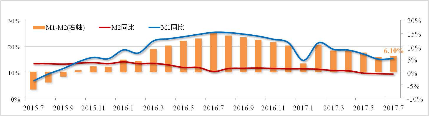 分析認(rèn)為:貨幣供應(yīng)量延續(xù)下滑趨勢(shì),而實(shí)體經(jīng)濟(jì)融資規(guī)模增速擴(kuò)大,反 映了金融“脫虛向?qū)?rdquo;工作效果良好。在央行加強(qiáng)金融監(jiān)管、縮短資金鏈條、減少多層嵌套的背景下,預(yù)計(jì)M2保持較低速度增長(zhǎng)會(huì)成為新常態(tài)。