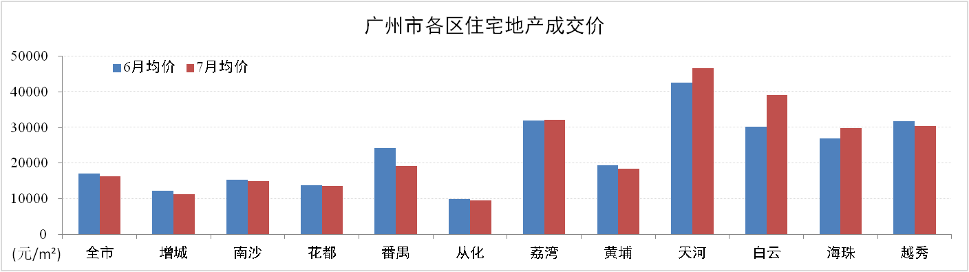 分析認為:7月全市成交價格略低于6月平均價格,部分區域出現價格波動,淡季影響價格下跌。預計在未來一段時間內,加上指導價政策的再次強調頒布,廣州市一手住宅成交均價將繼續呈現可控的回落態勢。