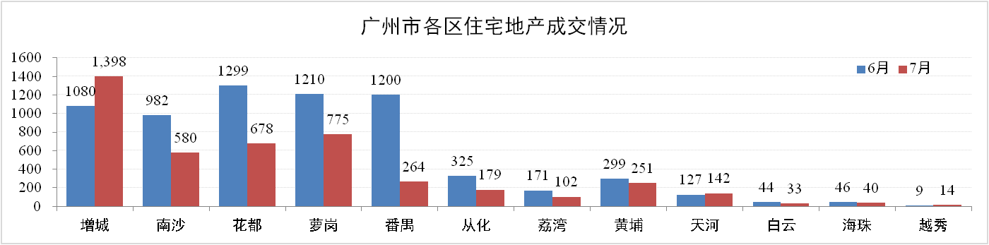 成交量方面:7月廣州一手住宅網簽成交4431套,環比下降35%,同比2016年7月的9990套減少5559套,同比下降55.65%。增城區一手住宅網簽1388套,環比增加29%。