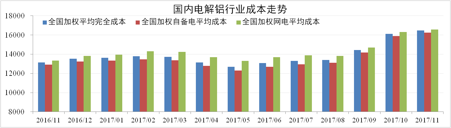 分析認為:氧化鋁行業(yè)減產(chǎn)后市場仍需時間消化過剩庫存,氧化鋁價格將持續(xù)走弱。電解鋁實際減產(chǎn)不及預(yù)期,陽極供應(yīng)緊張價格堅挺,另外部分地區(qū)燃煤供暖回歸,煤炭價格大漲,綜合來看預(yù)計12月電解鋁成本仍會上漲。