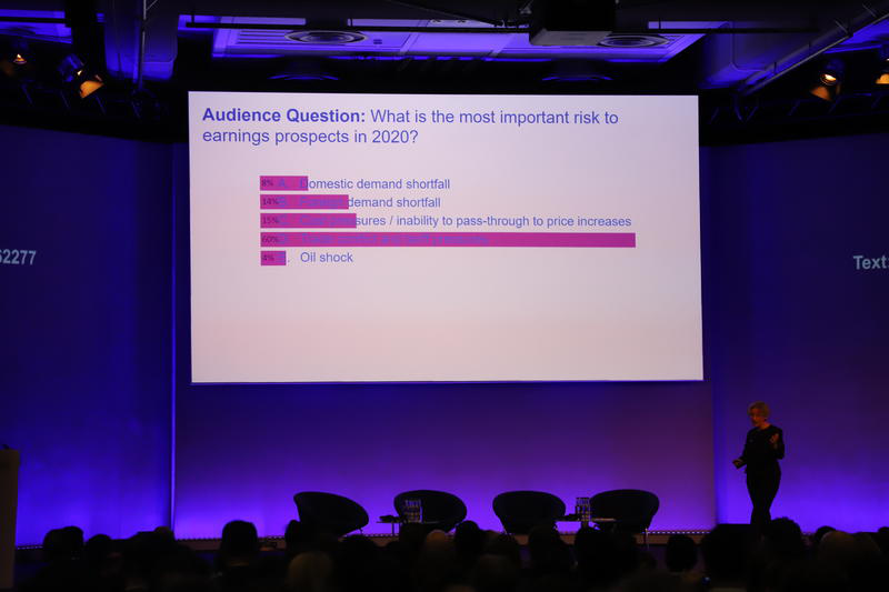 那么,影響2020年經濟增長的風險因素中,哪個最重要呢?60%觀眾選擇了貿易紛爭和關稅壓力,其次是成本壓力/價格上漲(15%)、國外需求短缺(14%)、國內需求短缺(8%),最后是石油市場不穩定(4%)。我同意你們的選擇。但也有一些很有意思的值得討論的地方。