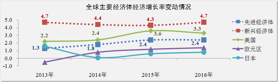 國際貨幣基金組織(IMF)在2015年全球經(jīng)濟發(fā)展展望預測報告中指出,目前全球經(jīng)濟呈現(xiàn)出四個趨勢:一是石油價格自去年9月份以來下跌近55%;二是全球經(jīng)濟增長基本符合預期,但主要經(jīng)濟體增長情況存在顯著差異;三是美元退出QE后幣值上升近6%;四是新興經(jīng)濟體的利率及風險利差逐步上升。IMF預計2015-2016年全球經(jīng)濟增長率分別為3.5%和3.7%。相比2014年10月期《世界經(jīng)濟展望》的預測,IMF對全球經(jīng)濟增長率下調(diào)了0.3個百分點。之所以做出這種調(diào)整,是因為對中國、俄羅斯、歐元區(qū)和日本經(jīng)濟前景做出了重新評估。應引起注意的是,美國是唯一增長預測上調(diào)的主要經(jīng)濟體。