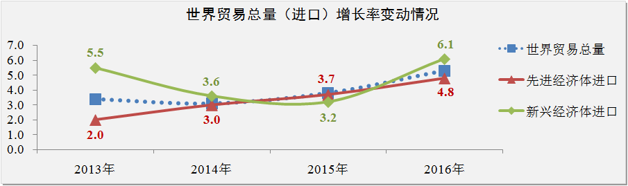 IMF數(shù)據(jù)顯示,2015-2016年世界貿(mào)易總量(貨物和服務)將會出現(xiàn)較快增長趨勢,增長率分別為3.8%和5.3%。受石油價格及大宗商品價格下跌對貿(mào)易條件和實際收入的負面影響,預計2015年新興經(jīng)濟體對世界貿(mào)易增長的貢獻將低于先進經(jīng)濟體,增長率為3.2%。隨著負面影響逐步化解,預計2016年新興經(jīng)濟體的貿(mào)易增長率將快速回升至6.1%。
